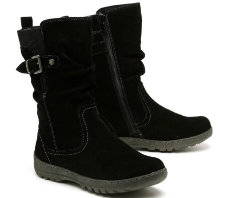 • מגפונים לנשים מריקל בצבע שחור עשויים זמש עם קשירה